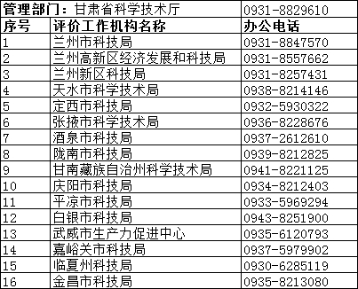 甘肅省科學(xué)技術(shù)廳,咨詢電話:0931-8829610;