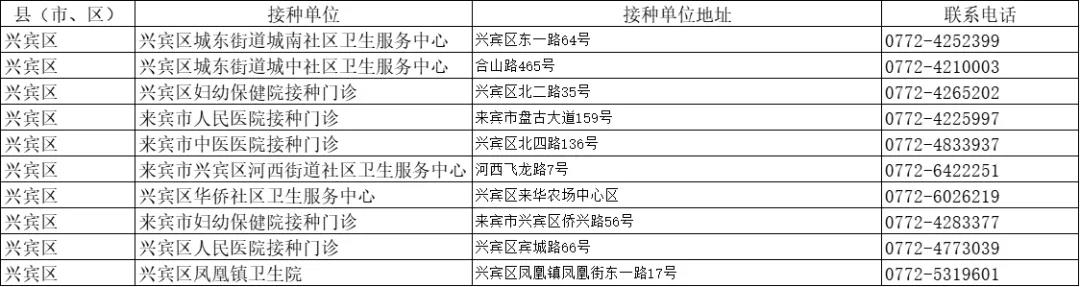 接種地點(diǎn):廣西壯族自治區(qū)來賓市興賓區(qū)北四路136號(hào)