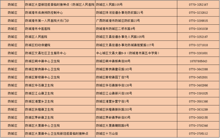 接種地點:廣西壯族自治區(qū)防城港市防城區(qū)文昌街道辦事處人民路105號,