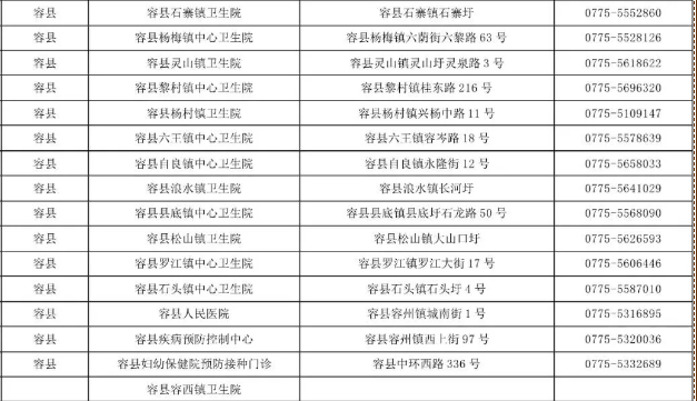 接種地點(diǎn):廣西壯族自治區(qū)玉林市容縣中環(huán)西路336號(hào),
