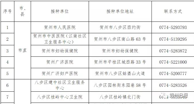接種地點(diǎn):廣西壯族自治區(qū)賀州市八步區(qū)信都鎮(zhèn)縣前街264號(hào)