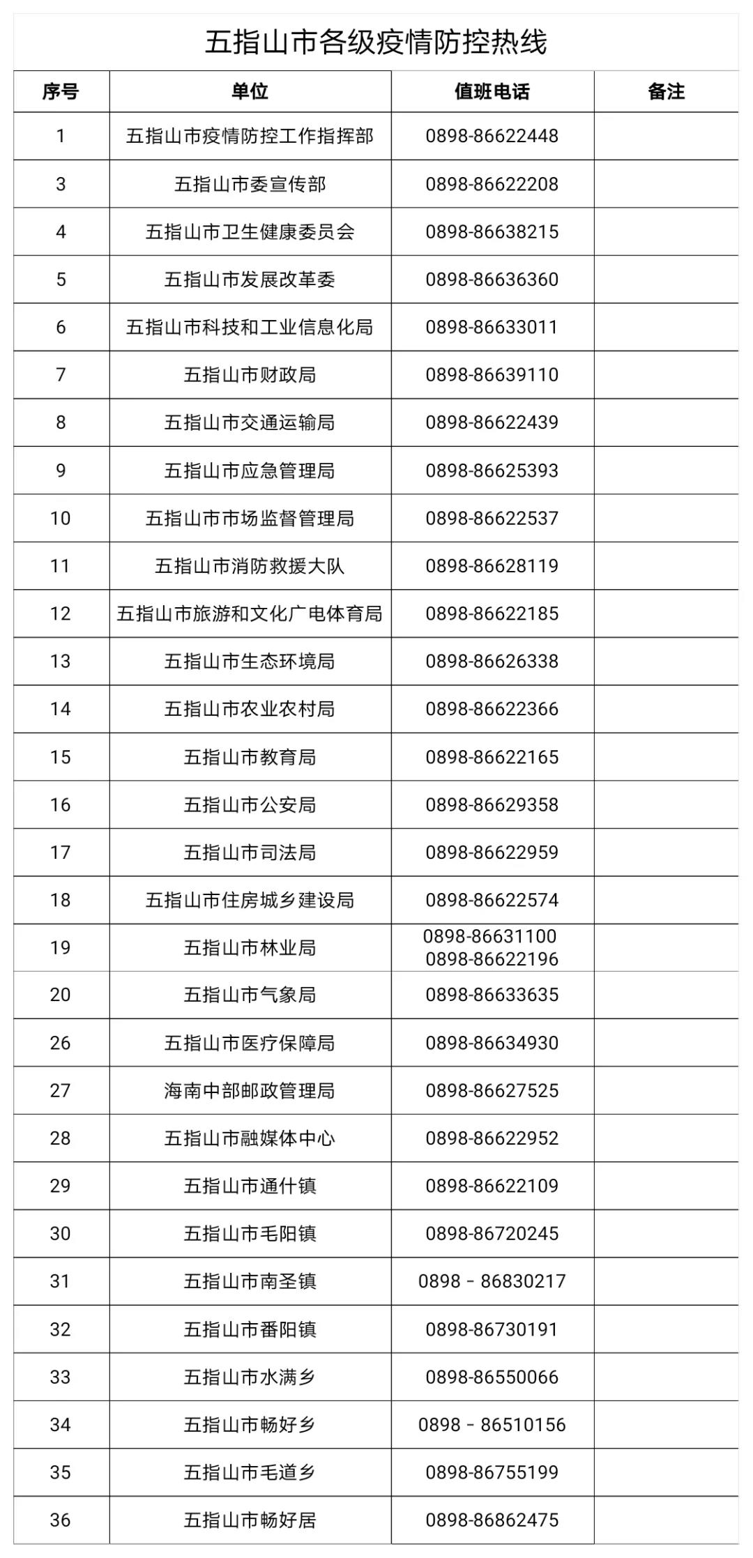 五指山市新冠疫情防控指揮部咨詢電話:0898-86622448