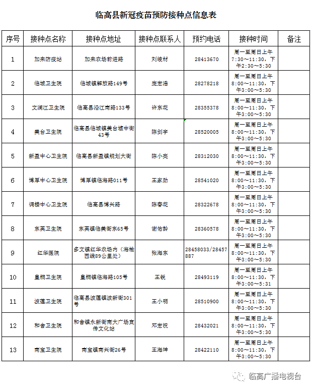 即日起,臨高縣內(nèi)18歲以上居民(含60歲以上)不論戶籍,身體狀況符合接種要求的均需免費(fèi)接種新冠病毒疫苗,請您與所在單位或社區(qū)聯(lián)系疫苗接種相關(guān)事宜。零散居民、流動人口也可攜帶身份證,就近自行前往接種點(diǎn)接種,接種點(diǎn)會根據(jù)疫苗供應(yīng)情況、日接種能力、排隊(duì)順序等發(fā)放接種序號。注意;接種點(diǎn)開放時間不定時有調(diào)整,建議先電話或者網(wǎng)上預(yù)約咨詢,臨高縣新冠疫情防控咨詢電話:0898-28355880;臨高縣新冠病毒疫苗接種單位名單、地址、接種時間和預(yù)約電話等相關(guān)信息請看這里↓↓↓