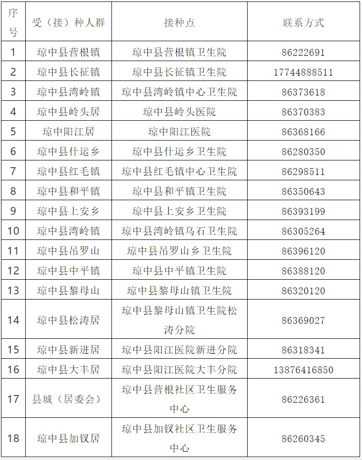 接種地點(diǎn):海南省瓊中縣營根鎮(zhèn)海榆路630號