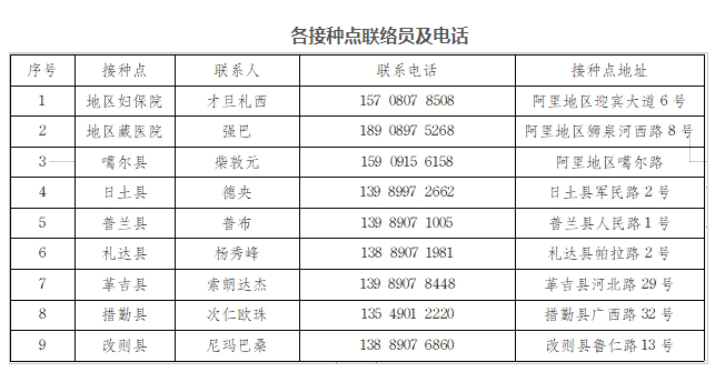 接種地點(diǎn):西藏自治區(qū)阿里地區(qū)迎賓大道6號;