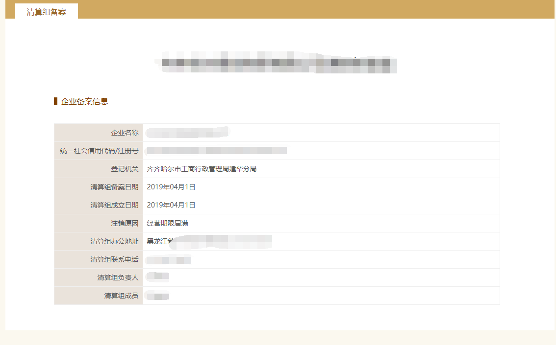 提示:除清算組成員及負(fù)責(zé)人信息,其他信息備案后不能修改!