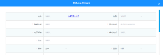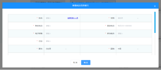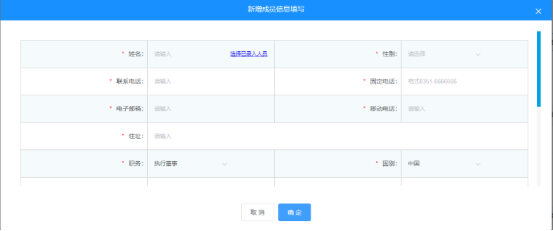 對于企業(yè)的經(jīng)營,離不開下列人員的廣泛參與,因此在設立環(huán)節(jié),需要采集下列“高級管理人員、法定代表人、委托代理人、聯(lián)絡員、財務負責人”的信息,申請人需要依次填寫相關內(nèi)容。新增成員信息,可選擇已錄入人員,方便用戶操作。