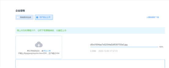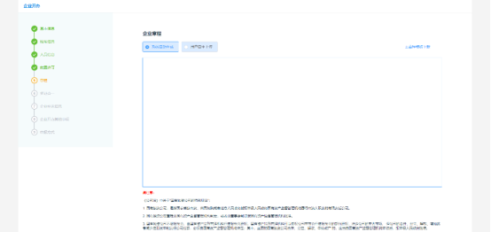 當然對于一些企業(yè),不需要通過系統(tǒng)生產(chǎn)的章程時,我們可以上傳企業(yè)自己的章程,如圖所示: