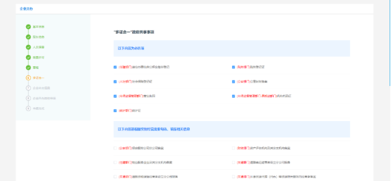 根據(jù)《山西省工商行政管理局關于進一步統(tǒng)一規(guī)范企業(yè)注冊登記工作壓縮企業(yè)開辦時間的指導意見》(工商企注〔2018〕213號)等文件要求,本系統(tǒng)包含同步注冊公安刻章、稅務開辦、銀行開戶、公積金開戶、社保開戶功能,申請人可根據(jù)企業(yè)自身情況進行選擇。