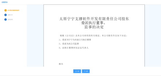 章程的生成,是根據(jù)在人員登記環(huán)節(jié)是否設立董事會和監(jiān)事會有關,在此界面上,我們可以看到系統(tǒng)為我們自動生成的相關內(nèi)容。