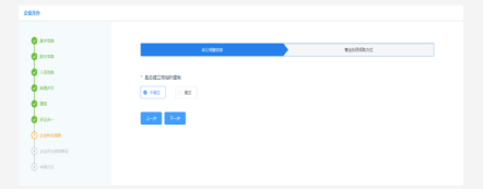 前置許可也是在設(shè)立環(huán)節(jié)的一項(xiàng),此處填寫前置許可經(jīng)營(yíng)事項(xiàng),包含許可機(jī)關(guān)名稱、許可機(jī)關(guān)。當(dāng)企業(yè)經(jīng)營(yíng)范圍不涉及前置許可,用戶不填寫此項(xiàng),可直接點(diǎn)擊“下一步”即可。