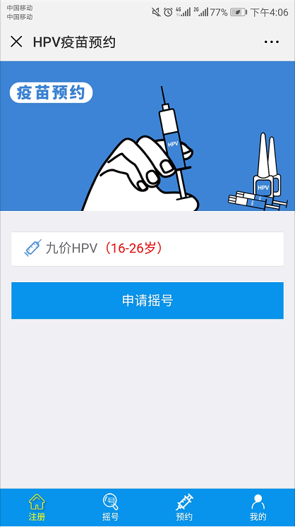 中簽者可登陸“HPV疫苗搖號”系統(tǒng)開始預(yù)約。