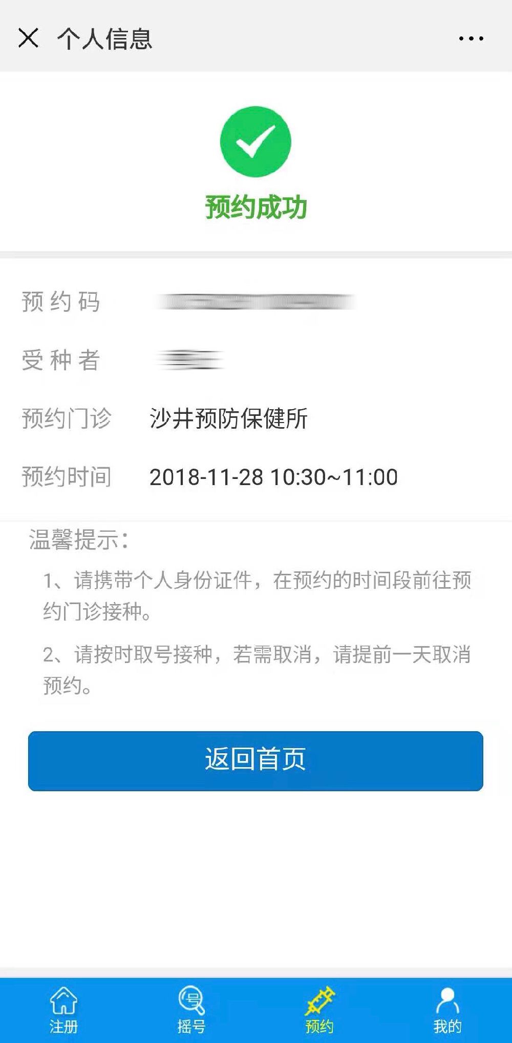 選擇接種門診、預(yù)約時(shí)間、受種者點(diǎn)擊【立即預(yù)約】