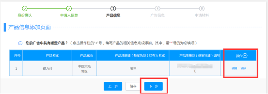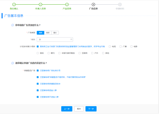 5) 點(diǎn)擊下一步在廣告信息頁簽中選擇廣告類別、確認(rèn)申請(qǐng)廣告內(nèi)容;