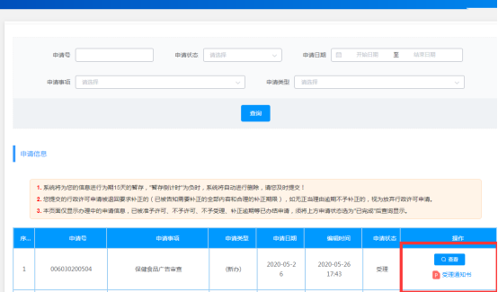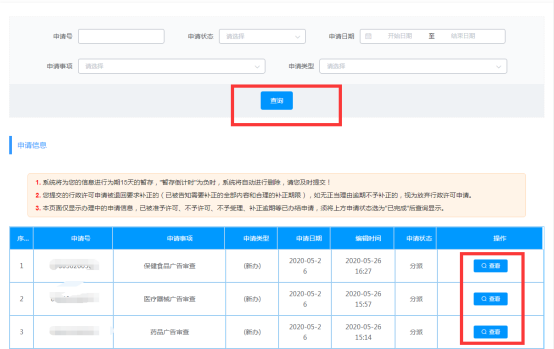 7) 點(diǎn)擊查詢,可以看到申請(qǐng)狀態(tài)。