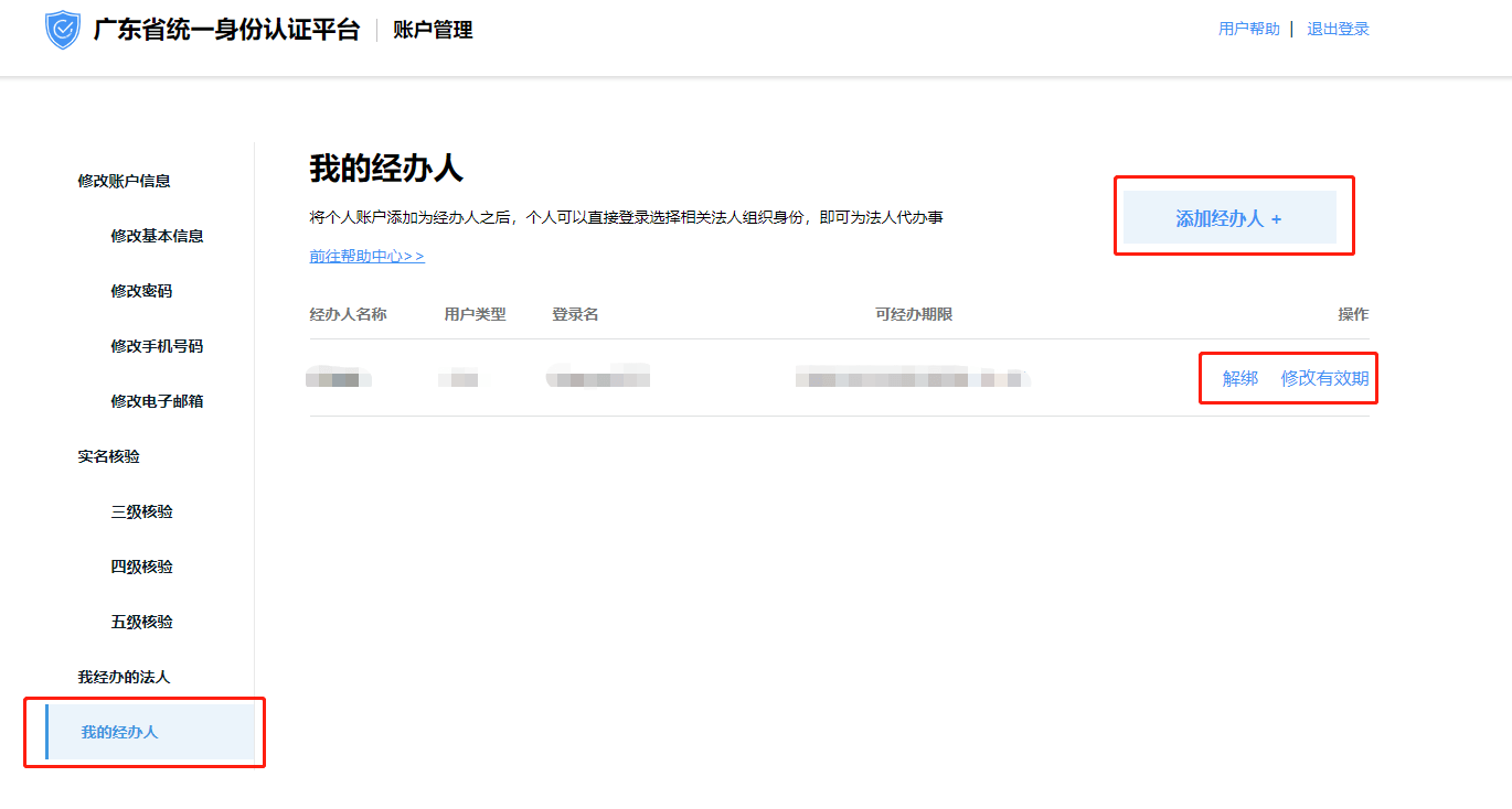 在賬戶管理頁的賬戶可信等級欄,選擇“我的經(jīng)辦人”。