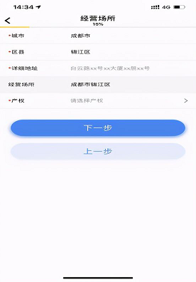 4、經(jīng)營(yíng)場(chǎng)所、經(jīng)營(yíng)范圍填寫。進(jìn)一步將詳細(xì)街道地址與產(chǎn)權(quán)情況完善后,點(diǎn)擊進(jìn)入經(jīng)營(yíng)范圍選擇。詳細(xì)地址填寫應(yīng)保持與住所證明材料(如房產(chǎn)證、購(gòu)房合同等)所記載地址一致。經(jīng)營(yíng)范圍主營(yíng)行業(yè)門類由第一步所選行業(yè)確定,若第一步選擇為“無(wú)字號(hào)”,則需要在主營(yíng)行業(yè)門類下拉菜單中進(jìn)行選擇,確定主營(yíng)行業(yè)類別,完善經(jīng)營(yíng)范圍后,點(diǎn)擊進(jìn)入下一步,如下圖: