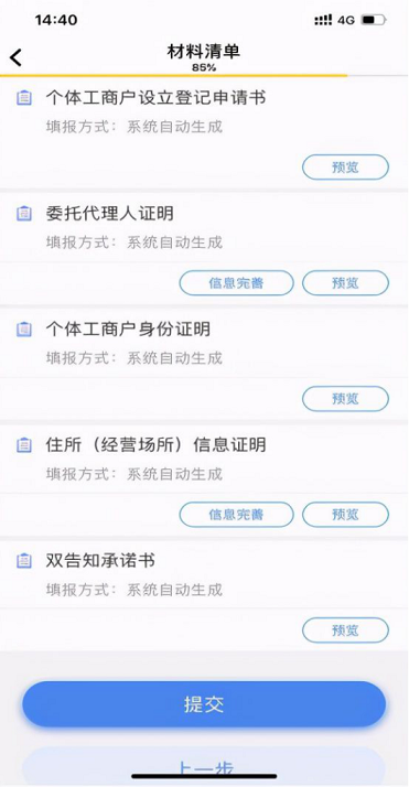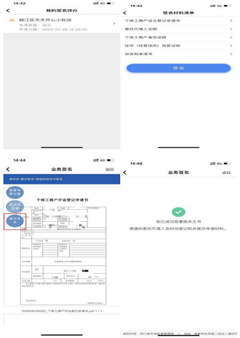 所有相關(guān)人員簽名完成后,在個(gè)體開辦頁(yè)面“我的業(yè)務(wù)”中找到申請(qǐng)件,確認(rèn)顯示簽名完畢后,點(diǎn)擊“提交申請(qǐng)”,完成申辦。