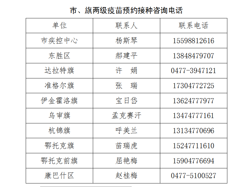 基于當(dāng)前新冠肺炎疫情防控需求,為了盡量減少人員聚集,防范感染風(fēng)險(xiǎn),鄂爾多斯全市預(yù)防接種實(shí)行分時(shí)段、疫苗種類的電話預(yù)約方式進(jìn)行疫苗接種服務(wù),請(qǐng)廣大市民提前進(jìn)行電話預(yù)約。