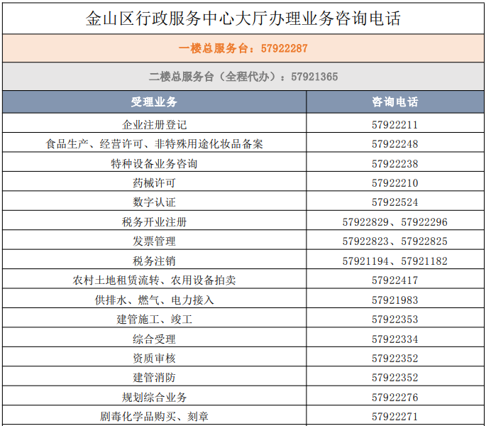 金山區(qū)行政服務(wù)中心大廳辦理業(yè)務(wù)咨詢電話 |