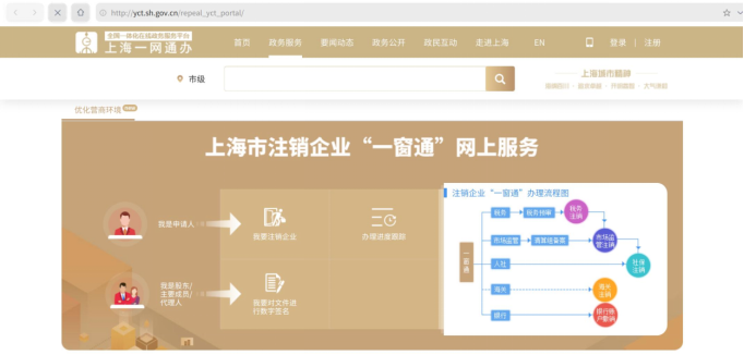 一、進(jìn)入上海市注銷企業(yè)“一窗通”網(wǎng)上服務(wù)(以下簡稱注銷平臺)頁面,填報注銷信息。