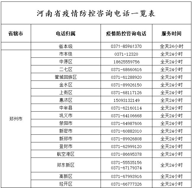 鄭州市各區(qū)(縣)市新冠疫情防控指揮部咨詢電話