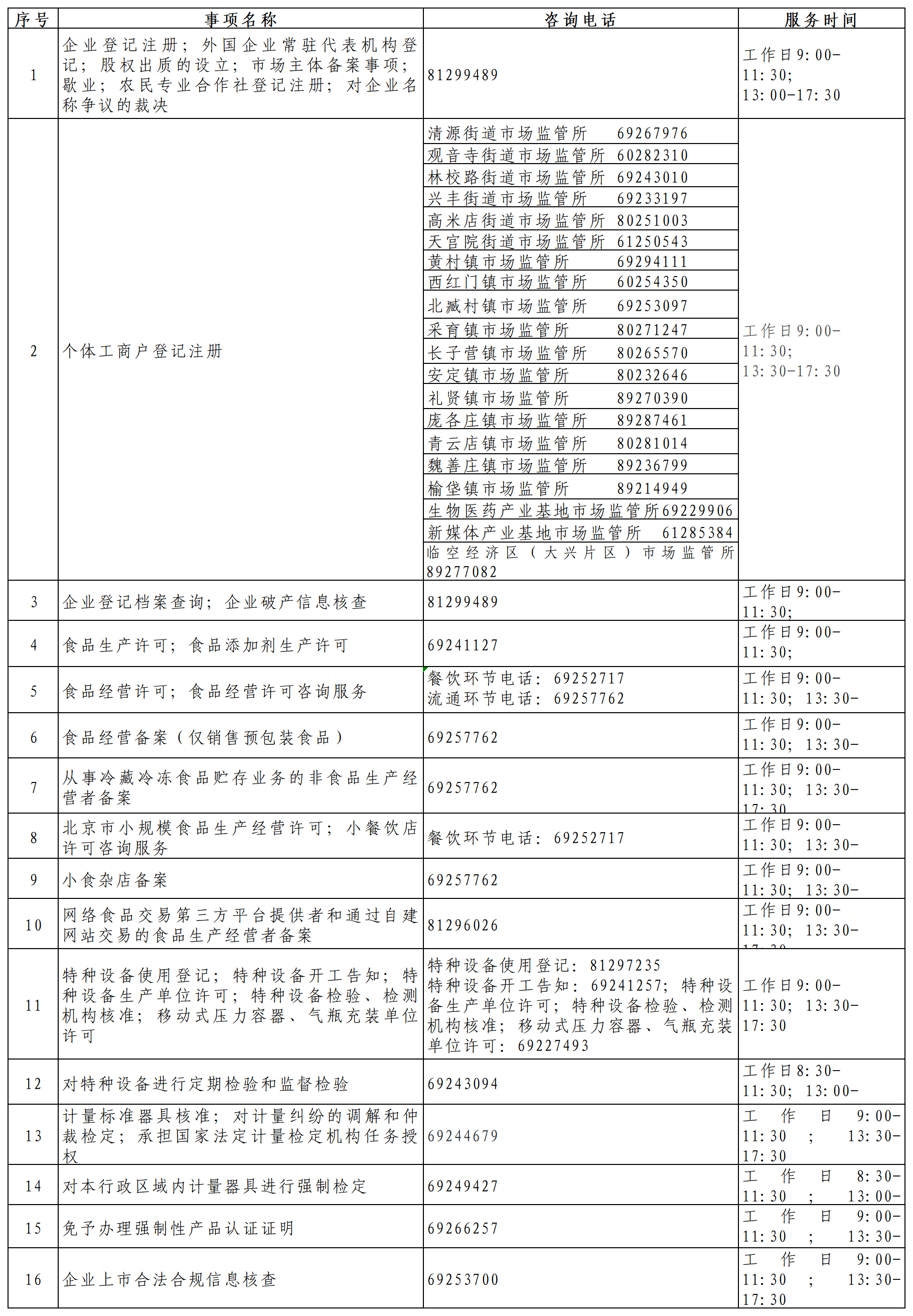 北京市大興區(qū)市場監(jiān)督管理局網(wǎng)上辦事大廳提供的服務(wù)內(nèi)容主要包括以下幾類: 1.**企業(yè)登記注冊** -公司設(shè)立、變更、注銷登記 -個體工商戶注冊、變更、注銷 -企業(yè)名稱預(yù)先核準(zhǔn) -企業(yè)信息查詢及公示 。。。