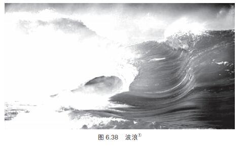 中國武術(shù)十分推崇水的力量,認(rèn)為水無常形,變化莫測(cè),能以柔克 剛。今天,我們知道水的力學(xué)現(xiàn)象十分神奇,流水的搬運(yùn)能力與流速有 關(guān)。根據(jù)艾里定律,被搬運(yùn)物體的重量與水流速度的六次方成正比。如 果流速增加一倍,則能被搬運(yùn)物體的重量將增大 64 倍。這就是為什么當(dāng) 洪水暴發(fā)、水流湍急時(shí)巨石被掀走,而水流緩慢時(shí)細(xì)沙也能沉淀,反差 非常大。 中國武學(xué)中非常重視對(duì)水作用力的模仿、借鑒和研究,有原始的流體 力學(xué)的經(jīng)驗(yàn)和內(nèi)容。波浪力就是類似于波浪的力,特點(diǎn)是不規(guī)則,包含了 多種方向的力,速度也富于變化(圖 6.38)。太極拳講究柔化,以柔克剛, 其現(xiàn)代物理學(xué)依據(jù)就是流體力學(xué)原理。