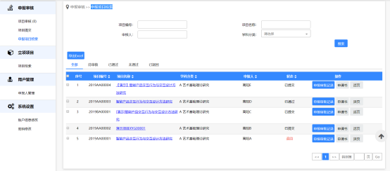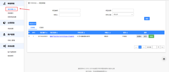 2)點擊“項目審批”菜單,進入申報項目審批界面,列表顯示待審批的項目列表。如圖3.5-1所示