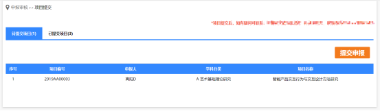 1)已登錄到“申報管理系統(tǒng)”。找到左側(cè)功能菜單“項目申報”下面的“提交申報”菜單。