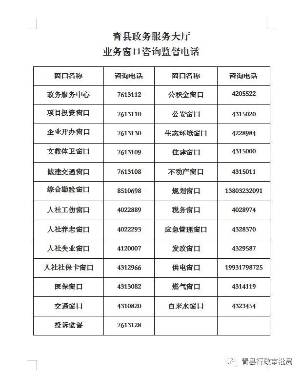 青縣政務(wù)服務(wù)辦事大廳各窗口咨詢電話