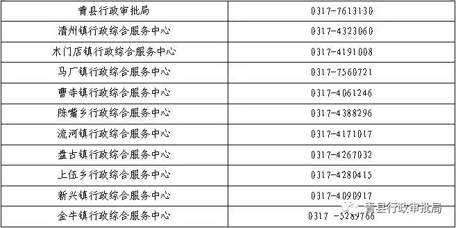 青縣各鄉(xiāng)鎮(zhèn)行政綜合服務(wù)中心聯(lián)系電話