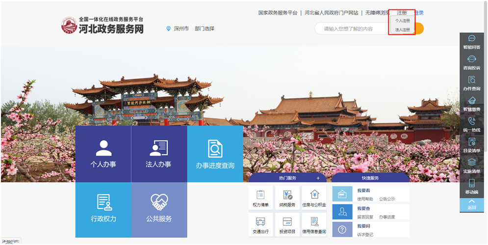 一、登錄“河北政務(wù)服務(wù)網(wǎng)”