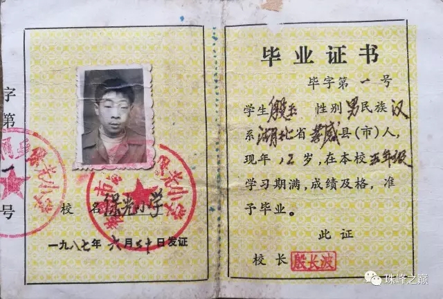 1987年6月30日,我也從湖北省孝感市涂河鄉(xiāng)保光小學(xué)畢業(yè)了。