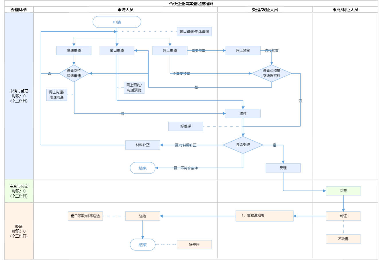 第九條 申請?jiān)O(shè)立合伙企業(yè),應(yīng)當(dāng)向企業(yè)登記機(jī)關(guān)提交登記申請書、合伙協(xié)議書、合伙人身份證明等文件。 合伙企業(yè)的經(jīng)營范圍中有屬于法律、行政法規(guī)規(guī)定在登記前須經(jīng)批準(zhǔn)的項(xiàng)目的,該項(xiàng)經(jīng)營業(yè)務(wù)應(yīng)當(dāng)依法經(jīng)過批準(zhǔn),并在登記時(shí)提交批準(zhǔn)文件。 第十條 申請人提交的登記申請材料齊全、符合法定形式,企業(yè)登記機(jī)關(guān)能夠當(dāng)場登記的,應(yīng)予當(dāng)場登記,發(fā)給營業(yè)執(zhí)照。 除前款規(guī)定情形外,企業(yè)登記機(jī)關(guān)應(yīng)當(dāng)自受理申請之日起二十日內(nèi),作出是否登記的決定。予以登記的,發(fā)給營業(yè)執(zhí)照;不予登記的,應(yīng)當(dāng)給予書面答復(fù),并說明理由。 第十二條 合伙企業(yè)設(shè)立分支機(jī)構(gòu),應(yīng)當(dāng)向分支機(jī)構(gòu)所在地的企業(yè)登記機(jī)關(guān)申請登記,領(lǐng)取營業(yè)執(zhí)照。 第十三條 合伙企業(yè)登記事項(xiàng)發(fā)生變更的,執(zhí)行合伙事務(wù)的合伙人應(yīng)當(dāng)自作出變更決定或者發(fā)生變更事由之日起十五日內(nèi),向企業(yè)登記機(jī)關(guān)申請辦理變更登記。 第九十條 清算結(jié)束,清算人應(yīng)當(dāng)編制清算報(bào)告,經(jīng)全體合伙人簽名、蓋章后,在十五日內(nèi)向企業(yè)登記機(jī)關(guān)報(bào)送清算報(bào)告,申請辦理合伙企業(yè)注銷登記。