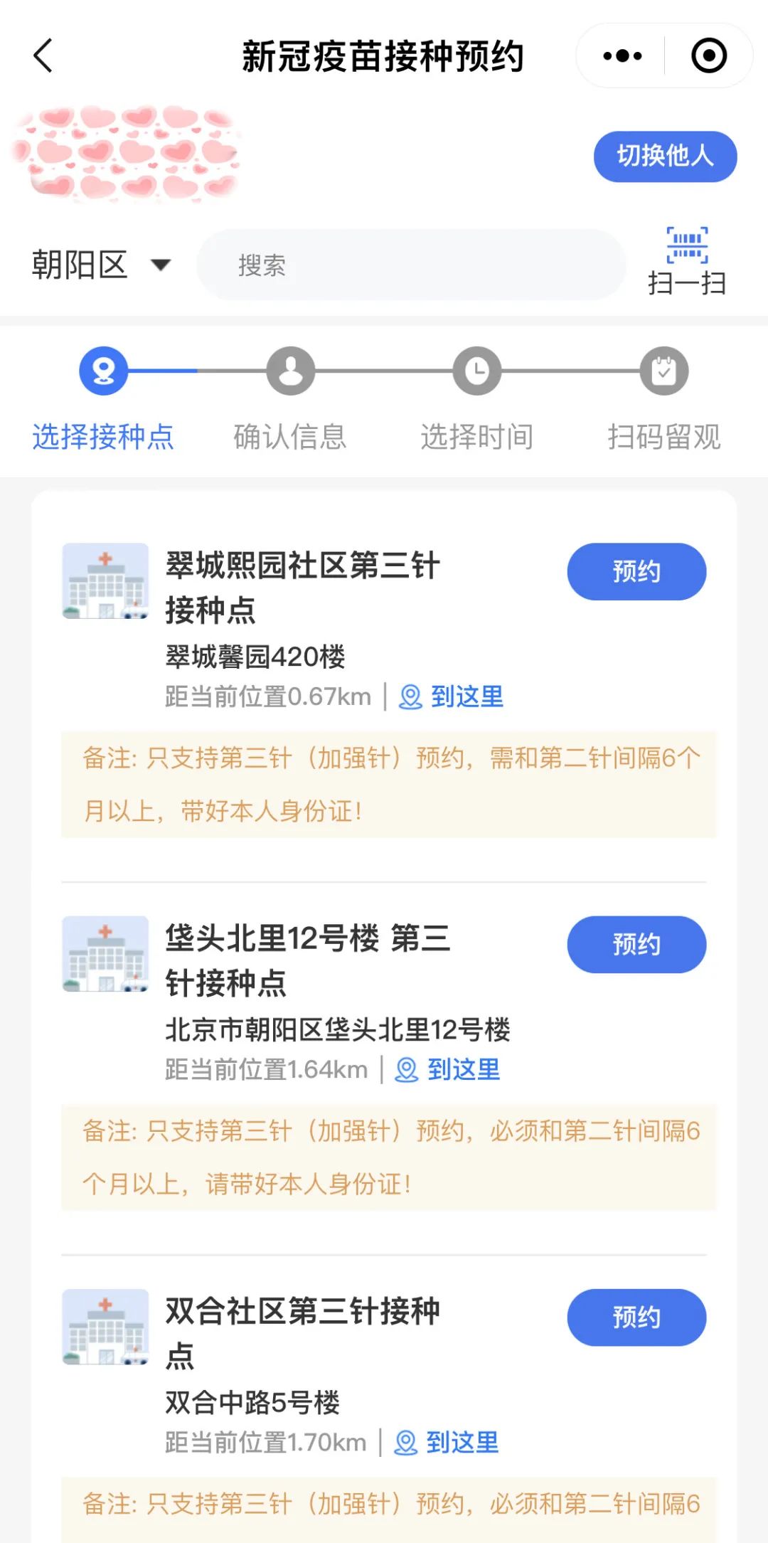 市民可通過微信小程序或支付寶搜索“聲智健康”,選擇朝陽區(qū)接種點進(jìn)行預(yù)約,預(yù)約成功后,攜帶本人身份證前往即可進(jìn)行接種。不方便使用智能手機(jī)的老年人也不用擔(dān)心,您可以前往現(xiàn)場咨詢工作人員,走綠色通道進(jìn)行接種。
