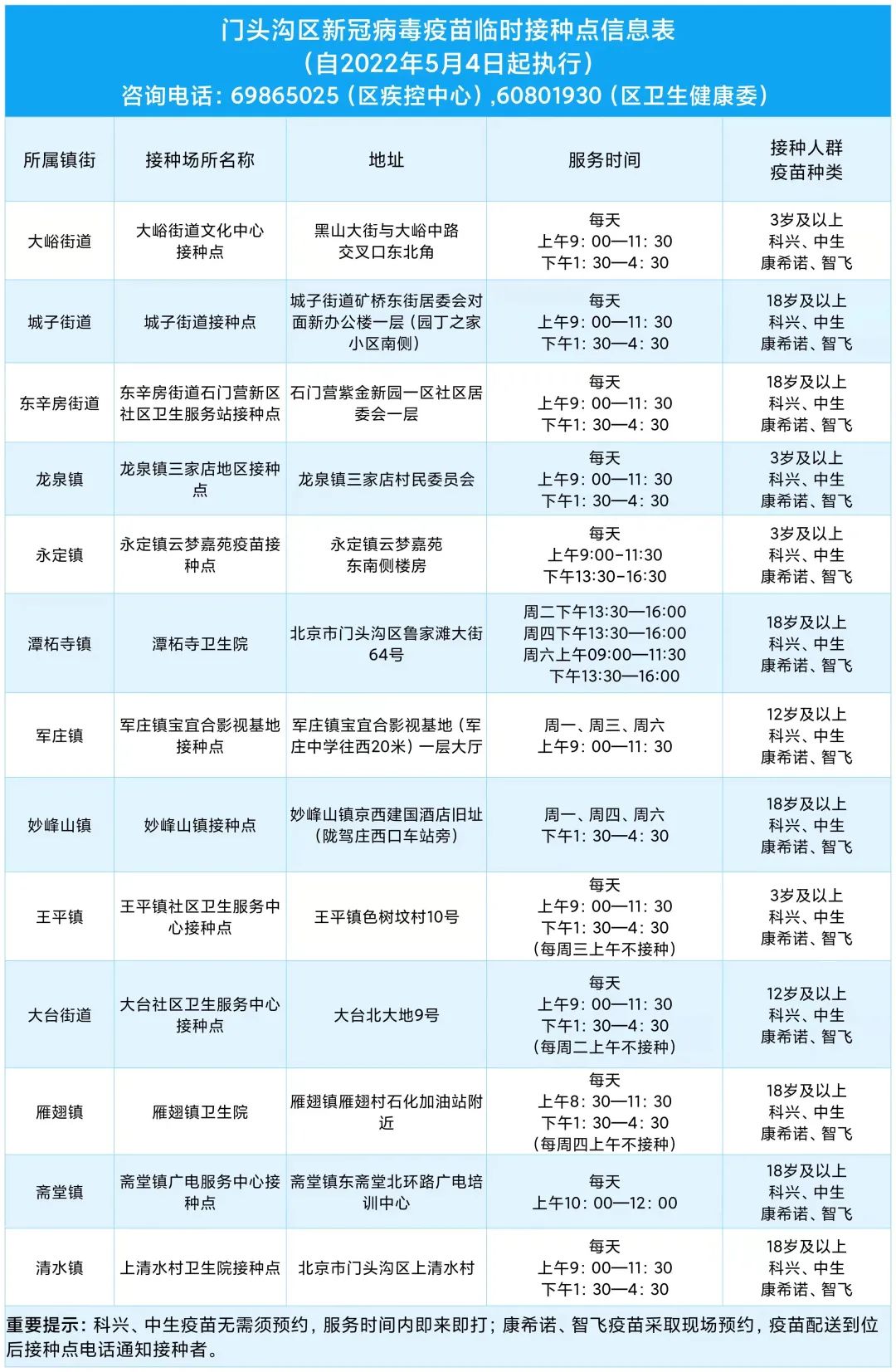 北京市門(mén)頭溝區(qū)新冠病毒疫苗臨時(shí)接種點(diǎn)信息表