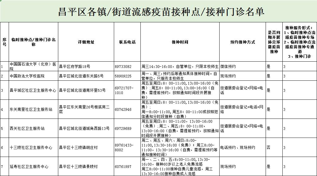 為有效預(yù)防出現(xiàn)大規(guī)模流感發(fā)病,給群眾的工作、生活帶來(lái)不便,昌平區(qū)按照北京市統(tǒng)一要求定于9月13日起全面啟動(dòng)免費(fèi)和自費(fèi)流感疫苗接種工作。昌平區(qū)共設(shè)立43家接種門診開(kāi)展免費(fèi)、自費(fèi)流感疫苗接種工作,詳見(jiàn)文末《昌平區(qū)各鎮(zhèn)/街道流感疫苗接種點(diǎn)/接種門診名單》。