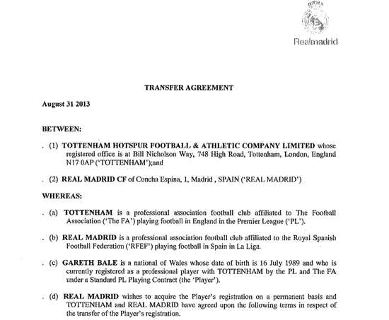 貝爾與皇馬的轉(zhuǎn)會協(xié)議全文: