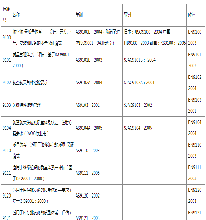 Aerospace(航空AS9100即)。ISO9000為基礎(chǔ),增加了行業(yè)的特殊要求,專門制定的質(zhì)量保證模式。