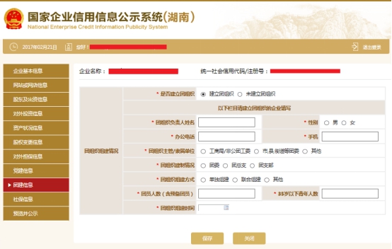 第十七步:進入黨建信息頁面。填寫黨建信息,點擊“保存”。