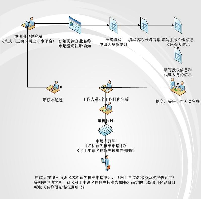 重慶市注冊公司設立登記前,需進行名稱預先核準(或名稱自主選擇)后,方可申請辦理設立登記;企業(yè)分支機構設立無需進行名稱預先核準。以有限公司的設立為例進行介紹,其他類型的企業(yè)設立操作。。。