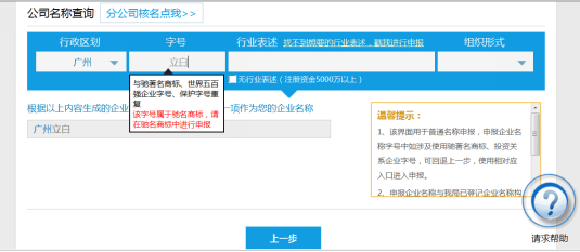 第三步:如擬用名稱存在禁止或限制使用的字詞時,系統(tǒng)會進行攔截或提示。