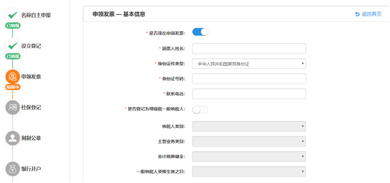 申請發(fā)票環(huán)節(jié)包含【申領(lǐng)發(fā)票——基本信息】和【領(lǐng)用票種信息】;