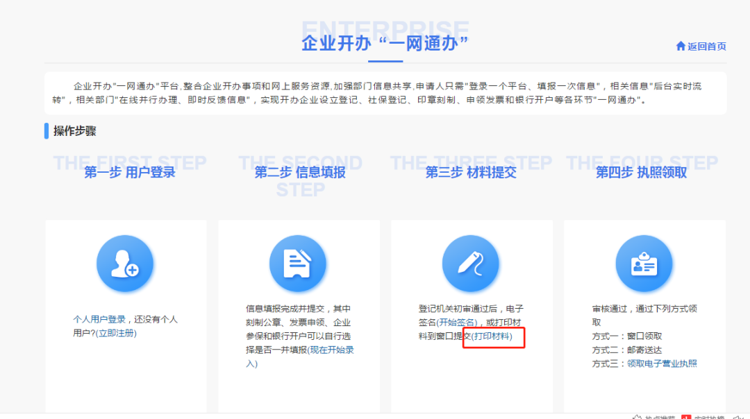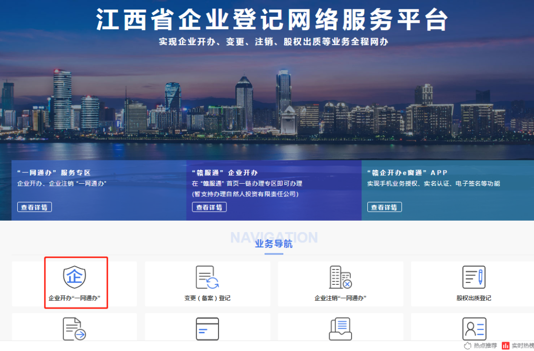 點擊首頁中業(yè)務(wù)導航下的【企業(yè)開辦“一網(wǎng)通辦”】:
