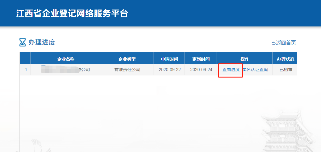 提交后,登記機關(guān)會在2個工作日內(nèi)進行審核,用戶需及時登錄系統(tǒng)查看進度。相關(guān)的辦理進度信息可以前往首頁,下拉至底端【辦理進度】中進行查看。