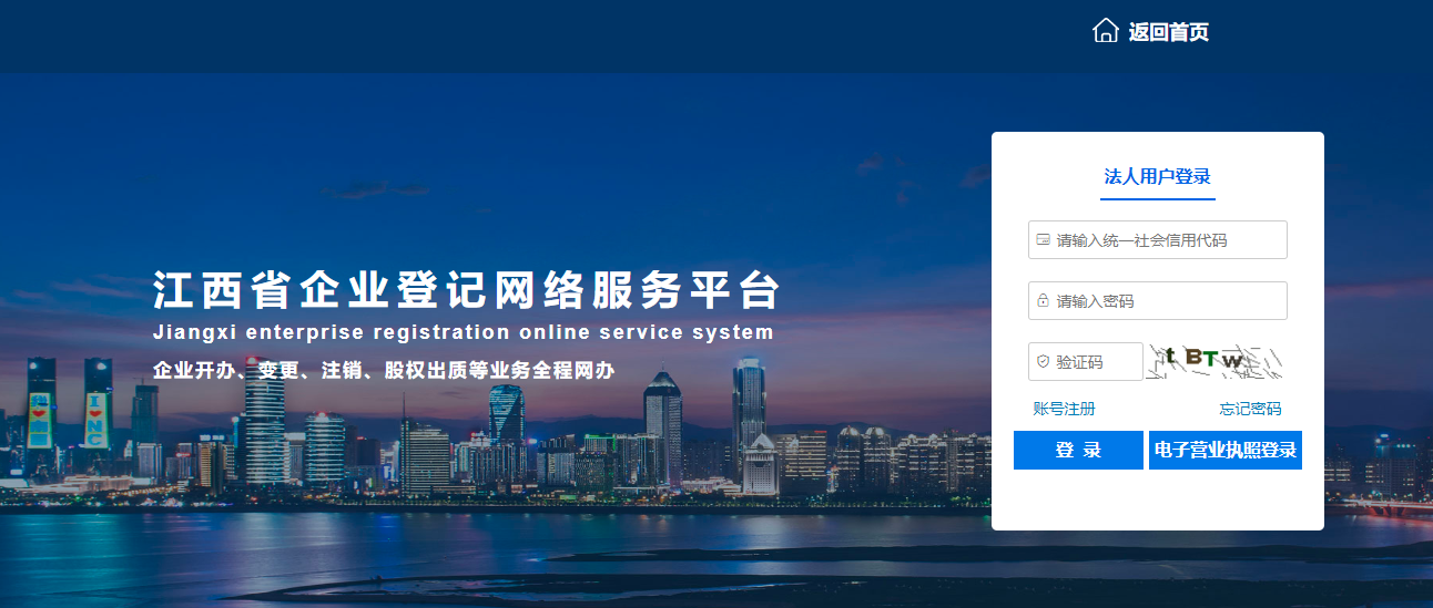 互聯(lián)網(wǎng)環(huán)境下,使用瀏覽器打開(kāi)江西省企業(yè)登記網(wǎng)絡(luò)服務(wù)平臺(tái)。江西省企業(yè)登記網(wǎng)絡(luò)服務(wù)平臺(tái)中分為以下幾個(gè)模塊:“一網(wǎng)通辦”服務(wù)專(zhuān)區(qū)、“贛服通”企業(yè)開(kāi)辦、“贛企開(kāi)辦e窗通”app、業(yè)務(wù)導(dǎo)航、辦理進(jìn)。。。