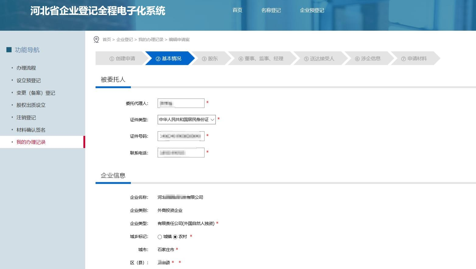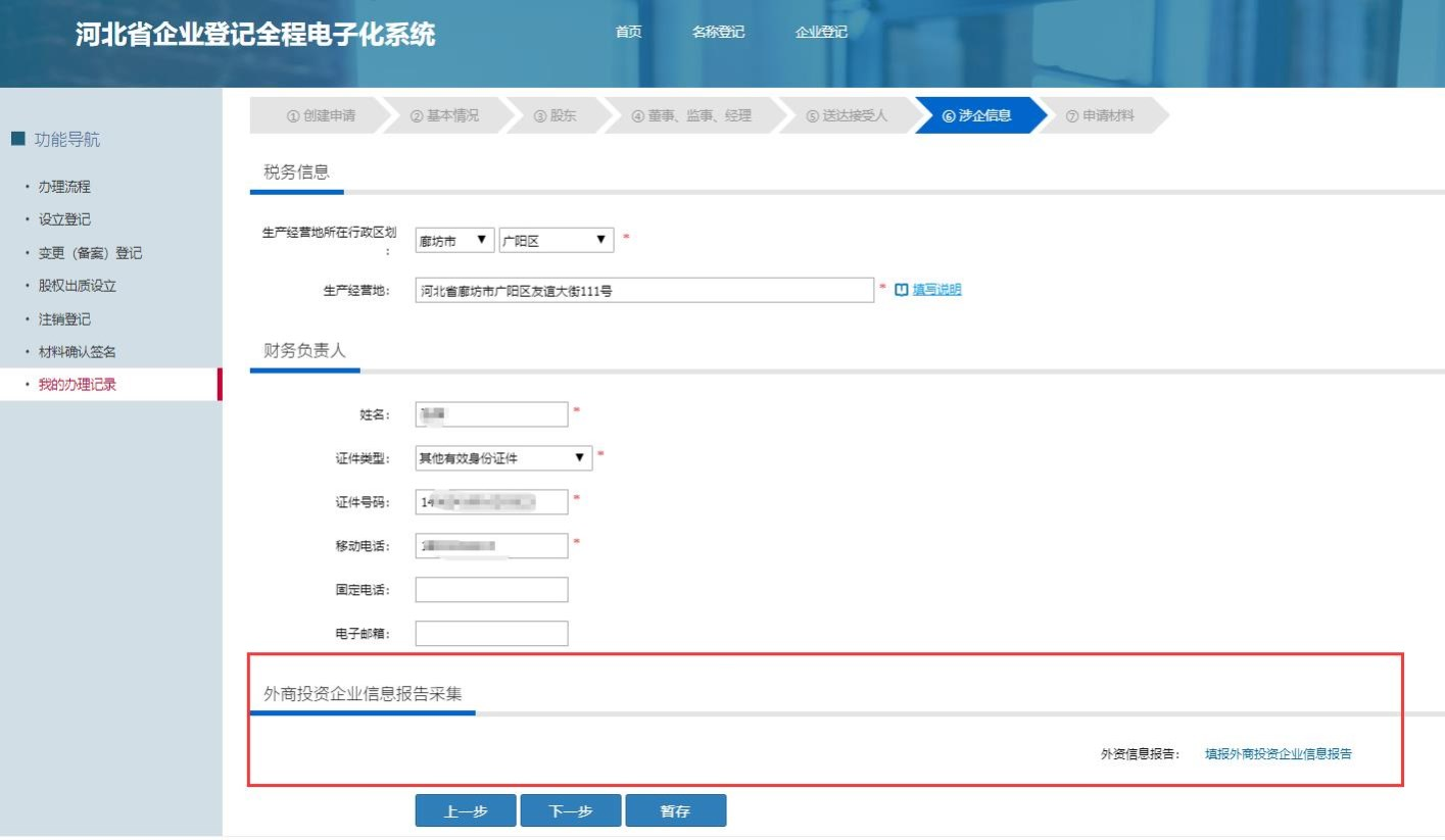 登錄成功,進(jìn)入河北省企業(yè)登記全程電子化系統(tǒng),填寫設(shè)立信息以及外商投資企業(yè)信息報告。