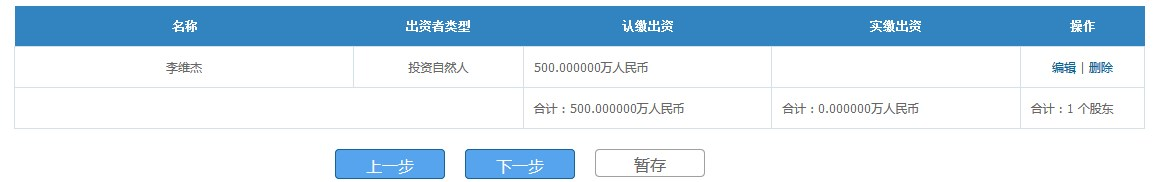 申報(bào)人填寫股東出資信息,包括股東類型、姓名、證件及認(rèn)繳信息等。