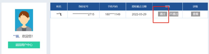 ③選擇要授權(quán)的經(jīng)辦人,點擊”通過”,完成經(jīng)辦人授權(quán)操作